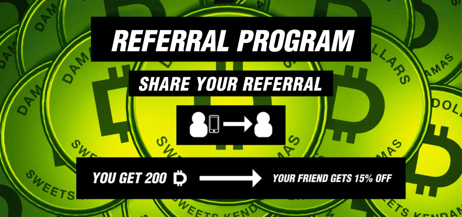 Share Your Referral Link with any new Sweets Kendamas Customer and they get 15% off their first kendama! In Return You will get 200 Dama dollars once they place their order!